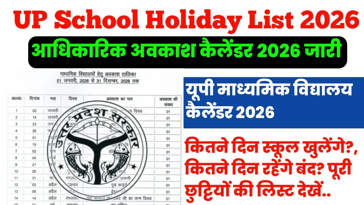UP School Holiday List 2026: उत्तर प्रदेश के लाखों छात्रों, अभिभावकों और शिक्षकों के लिए बड़ी खबर सामने आई है। यूपी के स्कूलों के लिए 1 जनवरी से 31 दिसंबर 2026 तक का अवकाश कैलेंडर जारी कर दिया गया है। इस नए कैलेंडर में पढ़ाई के दिनों के साथ-साथ छुट्टियों की पूरी रूपरेखा तय कर दी गई है। खास बात यह है कि इस बार गर्मी की छुट्टियों को मिलाकर कुल 112 दिन अवकाश रहेंगे। और 238 दिन शिक्षण कार्य और 15 दिन बोर्ड परीक्षा के लिए निर्धारित किए गए हैं।